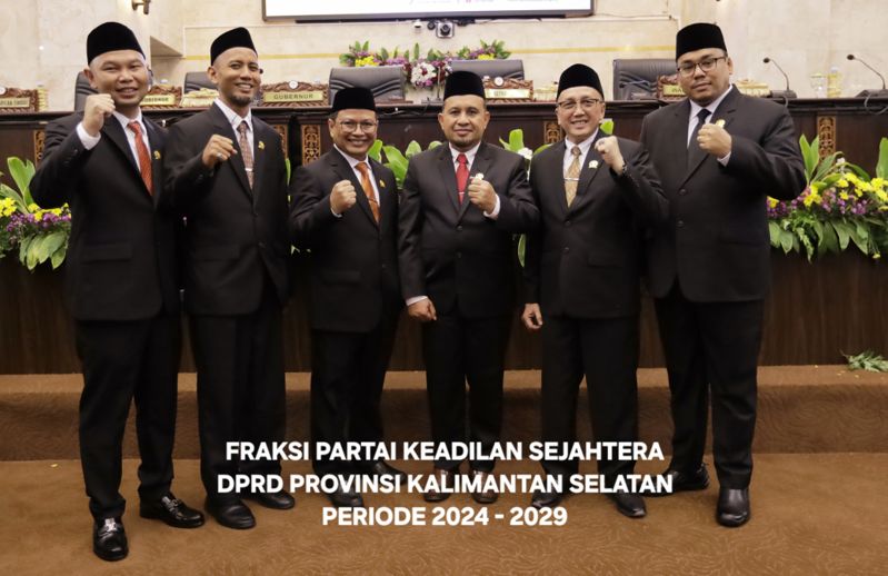 Dari hasil pemilihan anggota legislatif tahun 2024, PKS memperoleh enam kursi, bertambah 1 dibandingkan periode sebelumnya. Adapun enam Anggota Fraksi PKS DPRD Kalsel Periode 2024–2029 tersebut adalah H. Mushaffa Zakir, Lc. dari Dapil Kalsel 1 Kota Banjarmasin, H. Ardiansyah, S.Hut. dari Dapil Kalsel 4 (Kabupaten Tapin, HSS, dan Hulu Sungai Tengah), Firman Yusi, S.P. dari Dapil Kalsel 5 (Hulu Sungai Utara, Tabalong, dan Balangan).